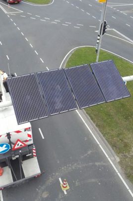 De gemeente heeft samen met de bedrijven Vialis en Spaar met de Zon afgelopen tijd hard gewerkt aan de realisatie van deze toepassing. De masten zijn hergebruikt uit een andere stad. Op deze masten stonden eerst verkeerslichten, nu zijn er zonnepanelen op gezet.